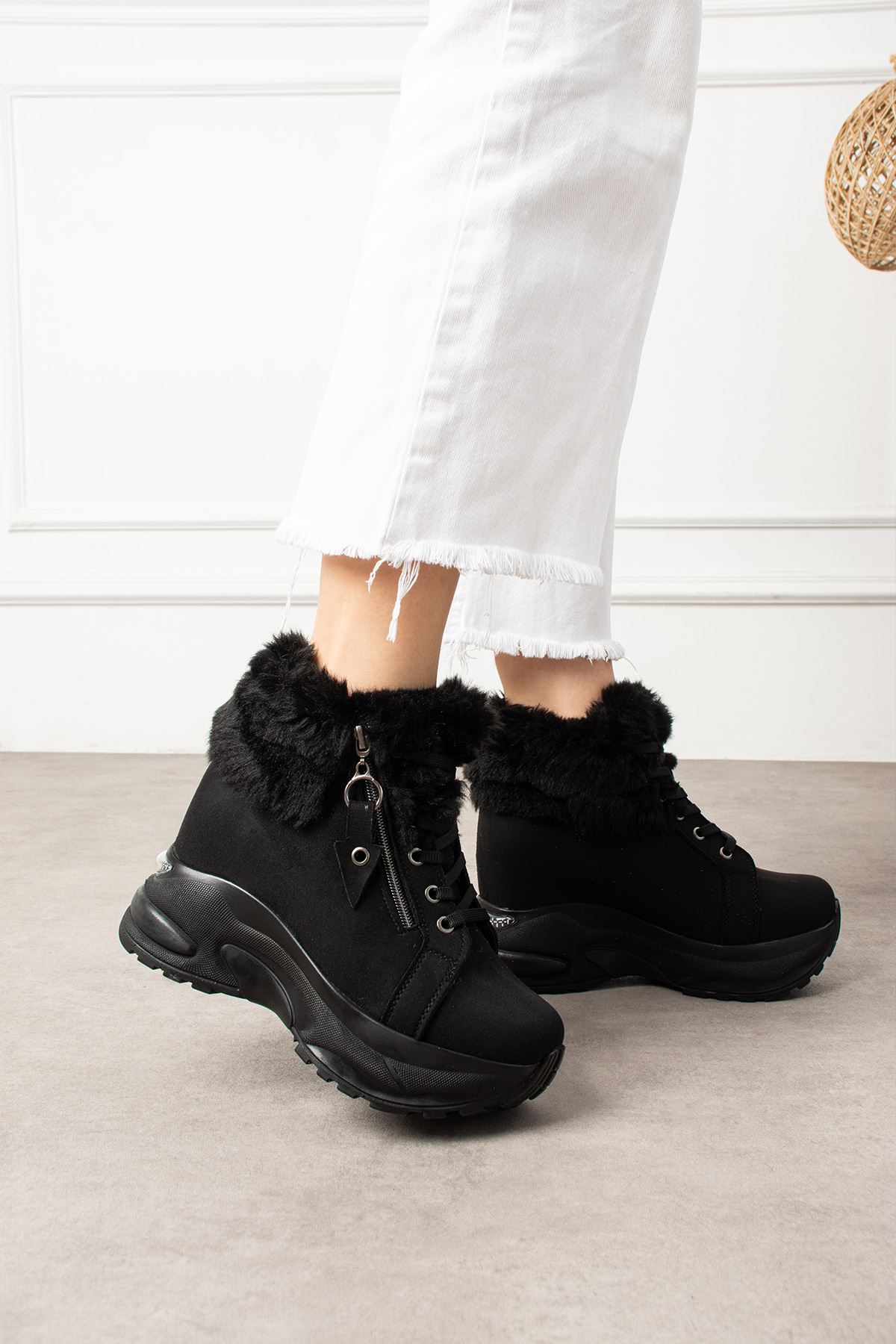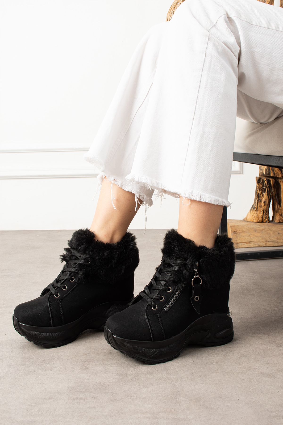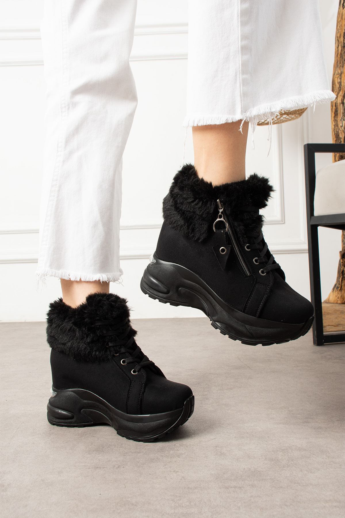 DİNAR KÜRKLÜ FERMUARLI SİYAH SÜET BOT