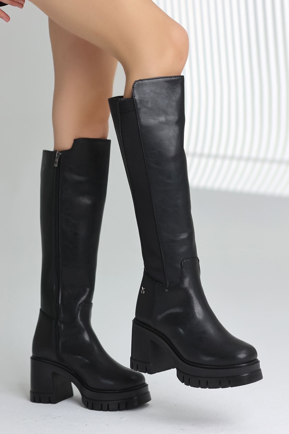 LENORA YANDAN STREÇ SİYAH ÇİZME