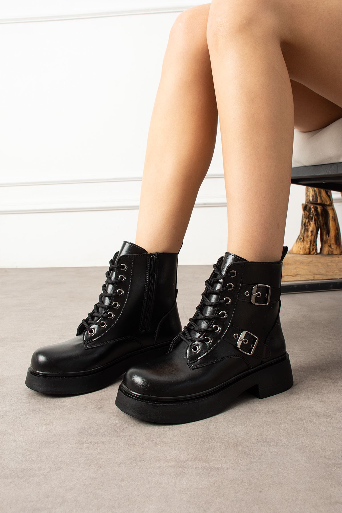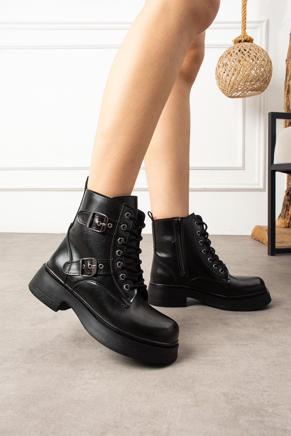 SAHRA TOKALI BAGÇIKLI SİYAH BOT