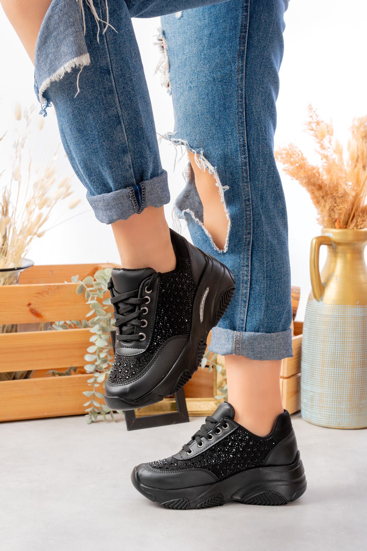 VERONA TAŞLI SİYAH SPOR